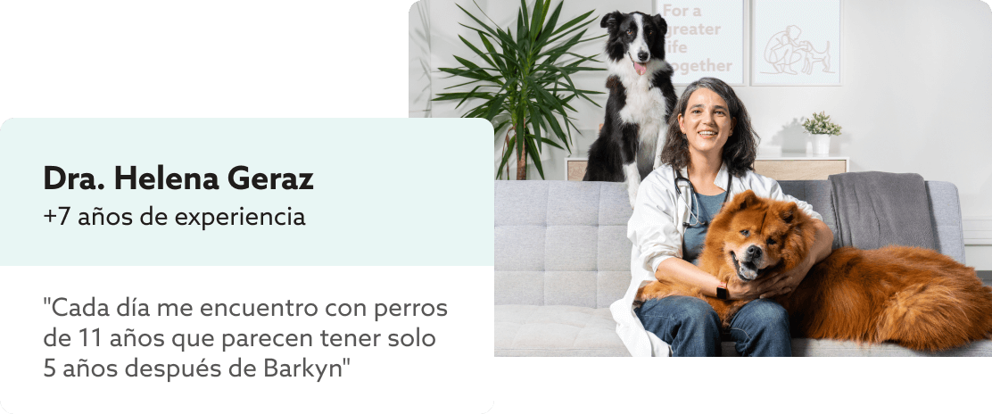 "Mi perro tenía dificultades para comer, parecía cansada de su comida. ¡Cuando probó Barkyn, le gustó de inmediato! He notado más vitalidad y alegría en ella."